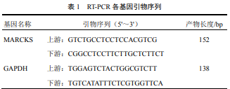 兔抗 MARCKS(20661-1-Ap,Proteintech),兔 抗 p-MARCKS(11992,CST),山羊抗兔 IgG(H+L) HRP(天德悅 S004),山羊抗小鼠 IgG(H+L)HRP (天德悅 S001),GAPDH 鼠單抗(天德悅 TDY042), 超純RNA提取試劑盒(CWbio.Co.Ltd,Cat#CW0581), HiFi-MMLV cDNA 第一鏈合成試劑盒(CWbio.Co.Ltd,Cat#CW0744)。渦旋振蕩儀(其林貝爾 QL-902), 離心機(jī)(Eppendorf Centrifuge 5415D),分光光度計(jì) (Therno Scientific,NANODROP 2000),熒光定量 PCR 儀(Applied Biosystems,ABI7500),F(xiàn)resco 低 溫冷凍離心機(jī)( Thermo ), MultiSkan3 酶標(biāo)儀 (Thermo),Mini P-4 電泳槽(Cavoy)。